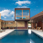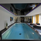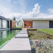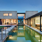 10. Atriumhaus mit geradlinigem Schwimmteich. Oberpfalz, DeutschlandArchitektur: Ein Atriumhaus mit 15 Meter langem Schwimmteich