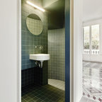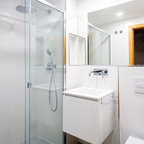 Kleines Modernes Duschbad mit grauen Fliesen und Keramikfliesen in Madrid — Houzz