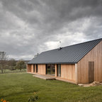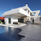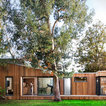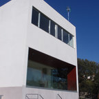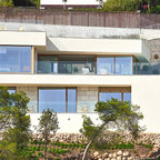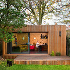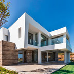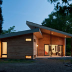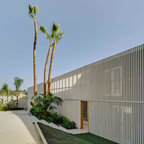 Einstöckiges, Kleines, Braunes Modernes Haus mit Holzfassade und Flachdach in Barcelona — Houzz