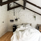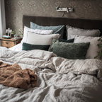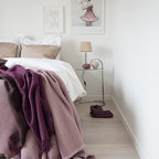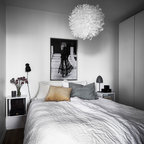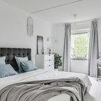 Mittelgroßes Nordisches Gästezimmer mit weißer Wandfarbe und braunem Holzboden in Göteborg — Houzz