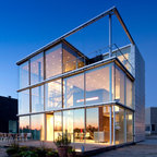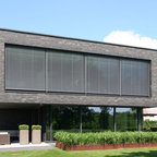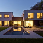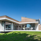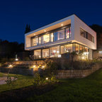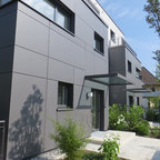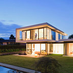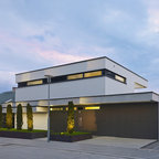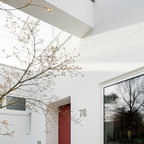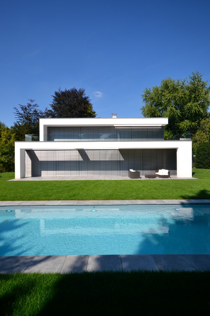 Einstöckiges, Weißes, Mittelgroßes Modernes Haus mit Putzfassade und Flachdach in Köln — Houzz