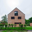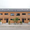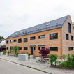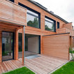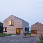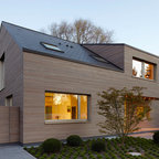 Mittelgroßes, Drei- oder mehrstöckiges, Braunes Modernes Reihenhaus mit Holzfassade und Satteldach in München — Houzz