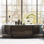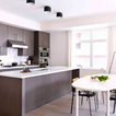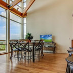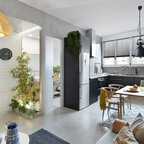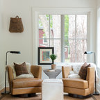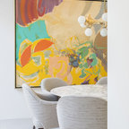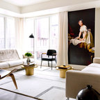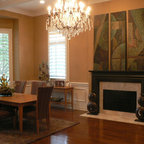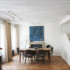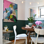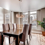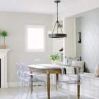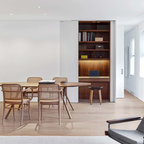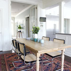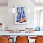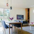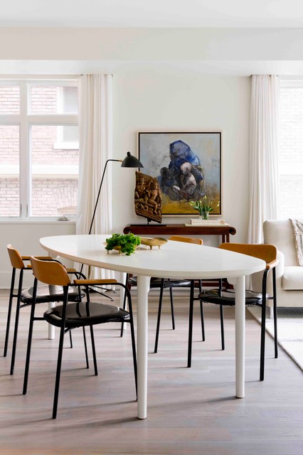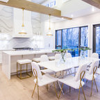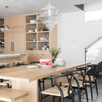 Offenes Modernes Esszimmer mit weißer Wandfarbe, hellem Holzboden und beigem Boden in Washington, D.C. — Houzz