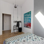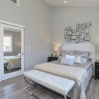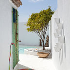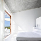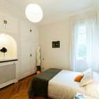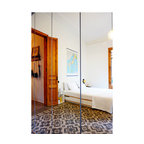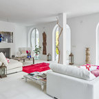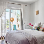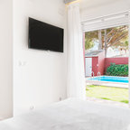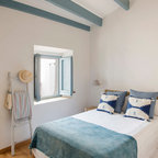Großes Mediterranes Hauptschlafzimmer ohne Kamin mit weißer Wandfarbe und Keramikboden in Malaga — Houzz