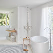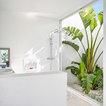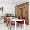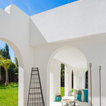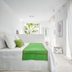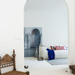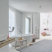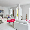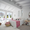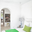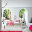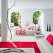 White with a pop. White painted ribbing. Linen curtains.