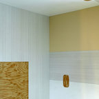 La cloison biseautée, une idée originale ! l'idée de peindre un mur suivant un angle est aussi une excellente idée.