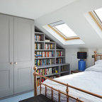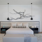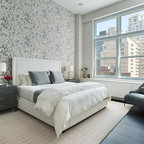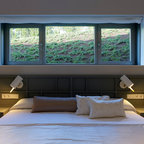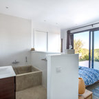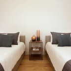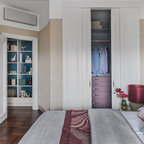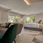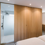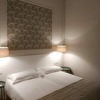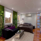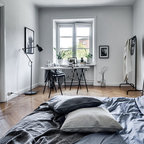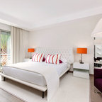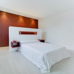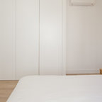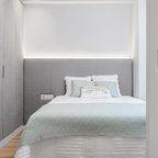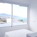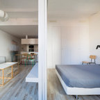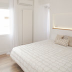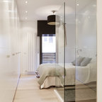 Mittelgroßes Modernes Hauptschlafzimmer ohne Kamin mit weißer Wandfarbe und Keramikboden in Barcelona — Houzz