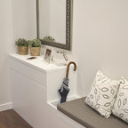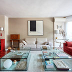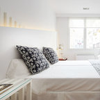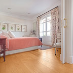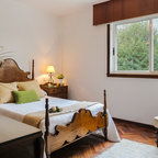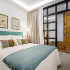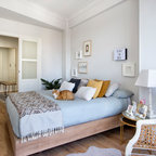 Klassisches Schlafzimmer mit grauer Wandfarbe, braunem Holzboden und braunem Boden in Madrid — Houzz