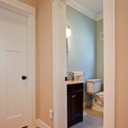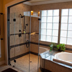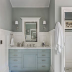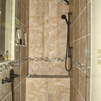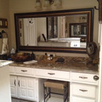 We utilized a Moroccan inspired mirror to accentuate and play with the unusual slanted roof line. By adding clean lines and ample drawers for storage, we were able to transform this outdated bathroom into a true modern master retreat.