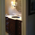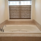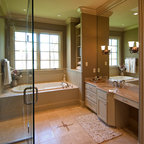 We utilized a Moroccan inspired mirror to accentuate and play with the unusual slanted roof line. By adding clean lines and ample drawers for storage, we were able to transform this outdated bathroom into a true modern master retreat.