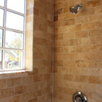 Floor tiles laid on the diagonal : shower floor is a good element