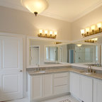 We utilized a Moroccan inspired mirror to accentuate and play with the unusual slanted roof line. By adding clean lines and ample drawers for storage, we were able to transform this outdated bathroom into a true modern master retreat.