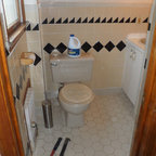 Mittelgroßes Klassisches Badezimmer En Suite mit Schrankfronten mit vertiefter Füllung, weißen Schränken, bodengleicher Dusche, Wandtoilette mit Spülkasten, weißen Fliesen, Metrofliesen, weißer Wandfarbe, Marmorboden, Unterbauwaschbecken, Marmor-Waschbecken/Waschtisch, weißem Boden, Falttür-Duschabtrennung und weißer Waschtischplatte in Chicago — Houzz