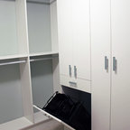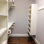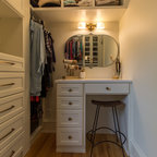 Mittelgroßer Klassischer Begehbarer Kleiderschrank mit Schrankfronten im Shaker-Stil, weißen Schränken, Teppichboden und grauem Boden in Chicago — Houzz