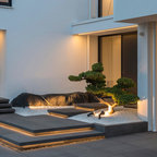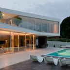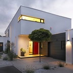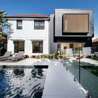 Großes, Zweistöckiges, Weißes Modernes Einfamilienhaus mit Putzfassade und Flachdach in Sonstige — Houzz