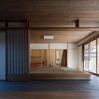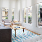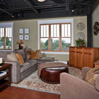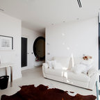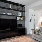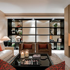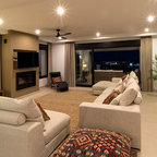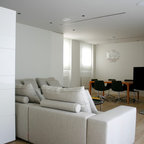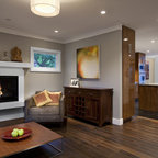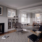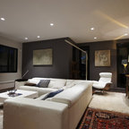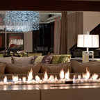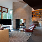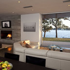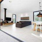 Geräumiges, Offenes Modernes Wohnzimmer mit Tunnelkamin in Surrey — Houzz
