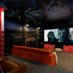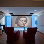 Geräumiges, Abgetrenntes Modernes Heimkino mit Leinwand in Sonstige — Houzz