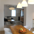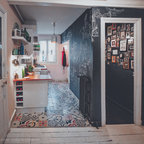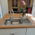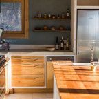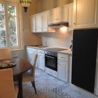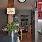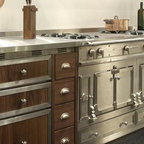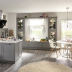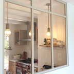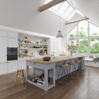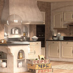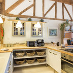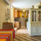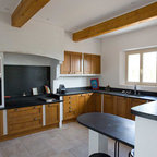 Offene, Zweizeilige, Große Country Küche mit gelben Schränken in Marseille — Houzz