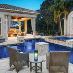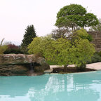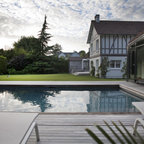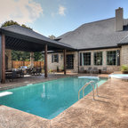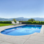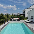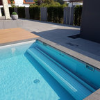 Kleiner Mediterraner Pool hinter dem Haus in rechteckiger Form in Sonstige — Houzz
