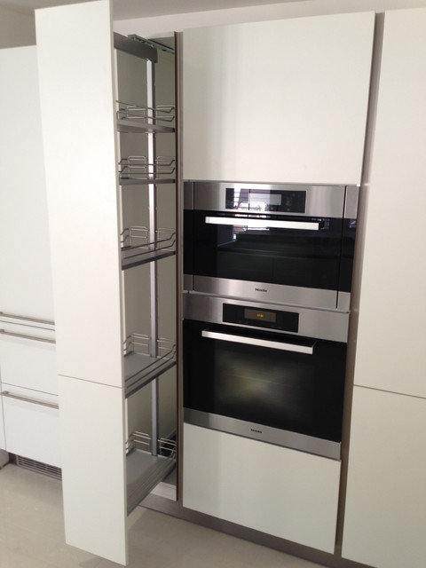 The Pull Out Pantry gives access to the everyday Items, and allows practical Use through the recessed Handles access in each heigth.