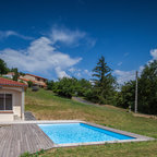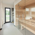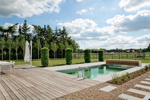 Moderner Pool in rechteckiger Form mit Dielen in Hamburg — Houzz