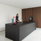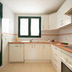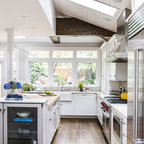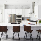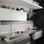 Küche mit Quarzwerkstein-Arbeitsplatte und weißer Arbeitsplatte in Sonstige — Houzz