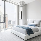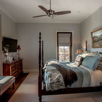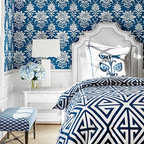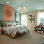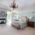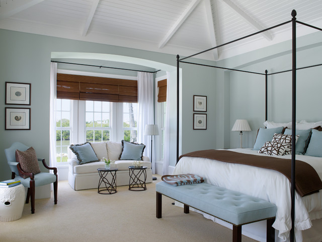 Klassisches Schlafzimmer mit blauer Wandfarbe und Teppichboden in Miami — Houzz