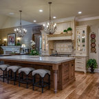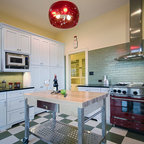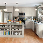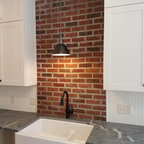 open shelving allows for a larger expanse of the 4-by-12-inch Carrara marble tiles and transformed the wall into a stunning focal point that grabs your attention as soon as you walk in the room. “It was important to have that texture of the marble here. A medium-gray grout with used which would be easier to keep clean