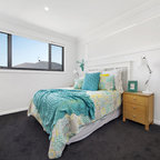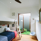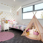 Mittelgroßes Modernes Kinderzimmer mit Schlafplatz, weißer Wandfarbe und braunem Holzboden in Brisbane — Houzz