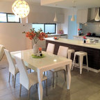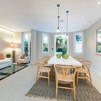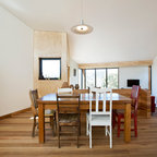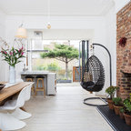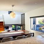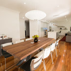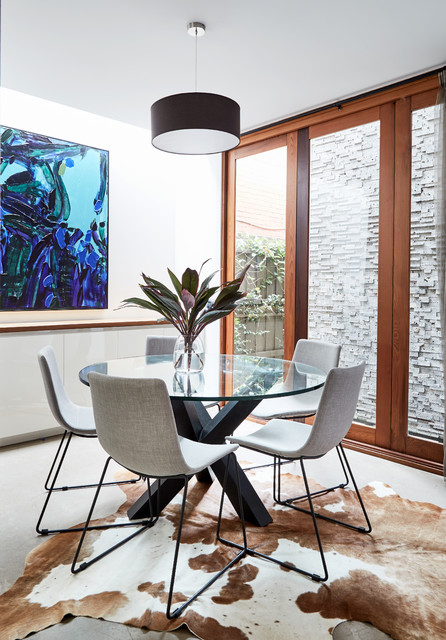 Modernes Esszimmer mit weißer Wandfarbe und Betonboden in Melbourne — Houzz
