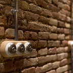 „Der erste Akt bestand darin, den Raum beinahe vollständig zu entkernen und ihn dann ganz neu zu strukturieren“, erläutern die Architekten. So kamen die Ziegelsteinmauern, Deckenbalken und schmiedeeisernen Säulen wieder zum Vorschein, die dem Wohnraum seinen besonderen Charme verleihen. „Als wir das Haus besichtigten, sind uns außerdem ein paar Fensterläden aufgefallen, die wir beibehalten haben und die jetzt am Eingang angebracht sind und vor neugierigen Blicken schützen, wenn wir wollen“, erzählt Littenberg.