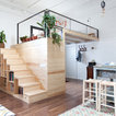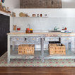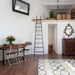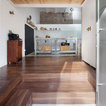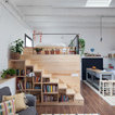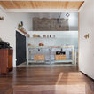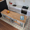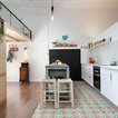 suelo cocina, isla, altillo de madera, pizarra