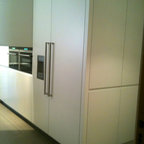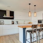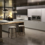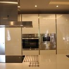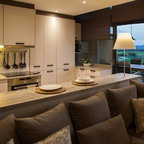Mittelgroße Moderne Wohnküche in L-Form mit Keramikboden und beigem Boden in Sevilla — Houzz