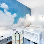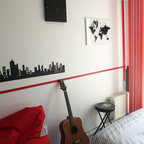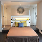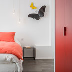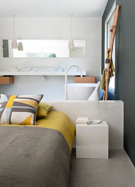 Großes Modernes Hauptschlafzimmer mit grüner Wandfarbe und Betonboden in Montpellier — Houzz