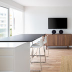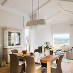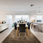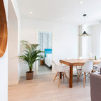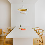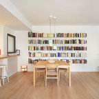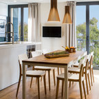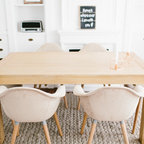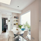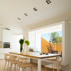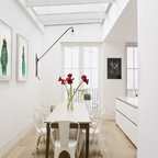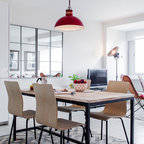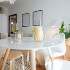 Offenes, Mittelgroßes Skandinavisches Esszimmer ohne Kamin mit weißer Wandfarbe und Keramikboden in Madrid — Houzz