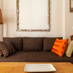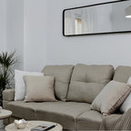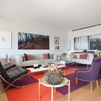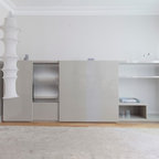 Großes, Repräsentatives, Fernseherloses, Abgetrenntes Stilmix Wohnzimmer ohne Kamin mit weißer Wandfarbe und braunem Holzboden in Madrid — Houzz