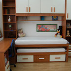 Großes Klassisches Mädchenzimmer mit Schlafplatz, beiger Wandfarbe und hellem Holzboden in Madrid — Houzz