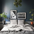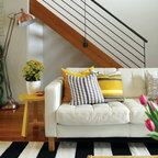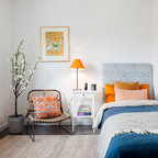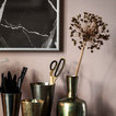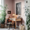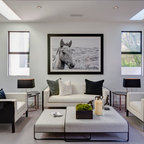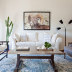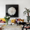 Consider the human scale and hang artwork with the center point at eye level in spaces where people stand, and lower where it’s viewed from a seated position.
