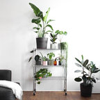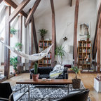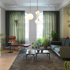Großes, Repräsentatives, Fernseherloses, Abgetrenntes Tropisches Wohnzimmer ohne Kamin mit weißer Wandfarbe und hellem Holzboden in Stockholm — Houzz