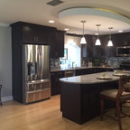 drop ceiling with lighting over peninsula/dining