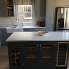 Two different colour cabinets love stools like the idea of breakfast bar and being able to watch the cooking happening