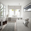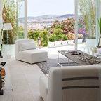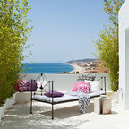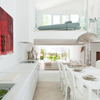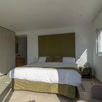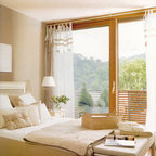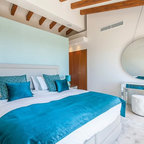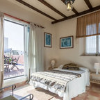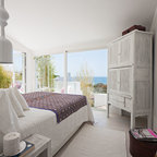 Mittelgroßes Mediterranes Gästezimmer ohne Kamin mit weißer Wandfarbe und Travertin in Malaga — Houzz