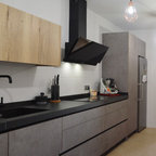 Isla cocina con taburetes altos.