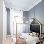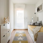 Mittelgroßes Maritimes Kinderzimmer mit Schlafplatz, beiger Wandfarbe, hellem Holzboden und braunem Boden in Barcelona — Houzz
