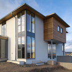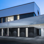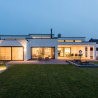 Großes, Zweistöckiges, Weißes Modernes Einfamilienhaus mit Mix-Fassade und Flachdach in Sonstige — Houzz