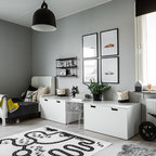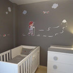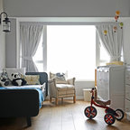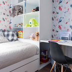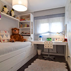 Mittelgroßes Klassisches Kinderzimmer mit Arbeitsecke, bunten Wänden und braunem Holzboden in Valencia — Houzz