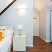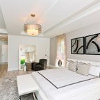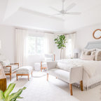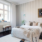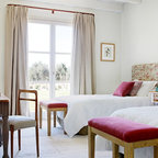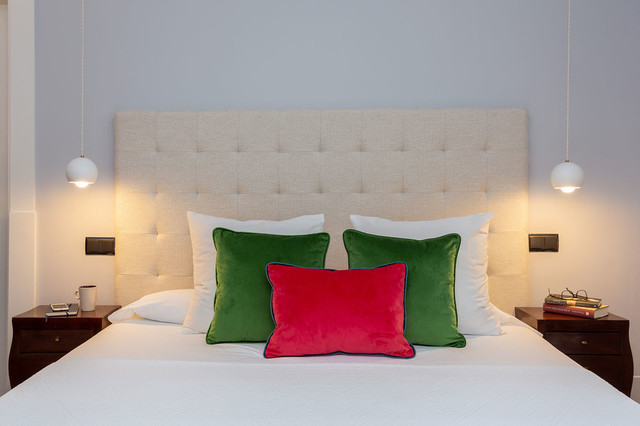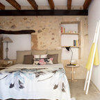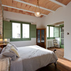 Großes Mediterranes Hauptschlafzimmer mit braunem Boden, grauer Wandfarbe und braunem Holzboden in Madrid — Houzz