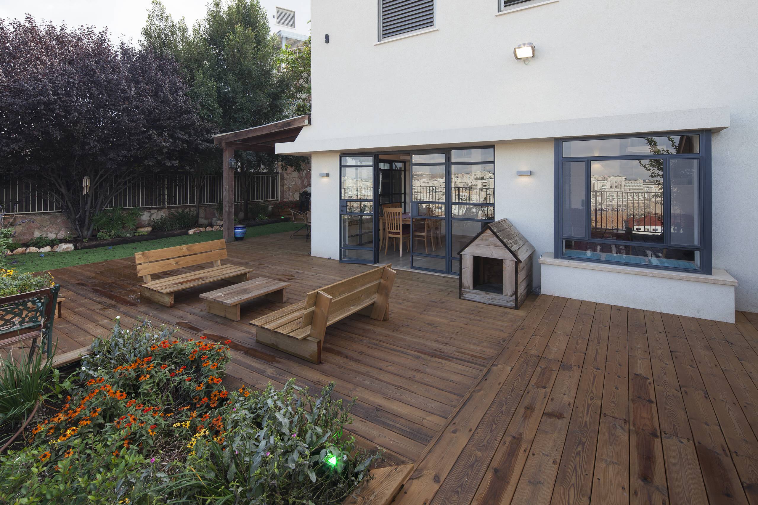 Alles im Blick und trotzdem gut geschützt vor Wind und Wetter fühlen sich viele Hunde in einer eigenen Hundehütte wohl. Zum Glück gibt es da eine große Auswahl – diese hier passt etwa perfekt zum modernen Design der Terrasse.