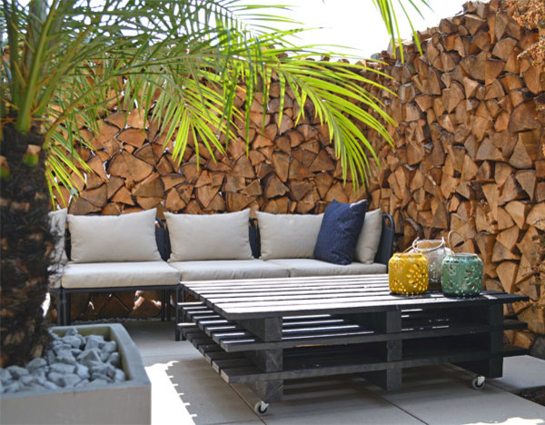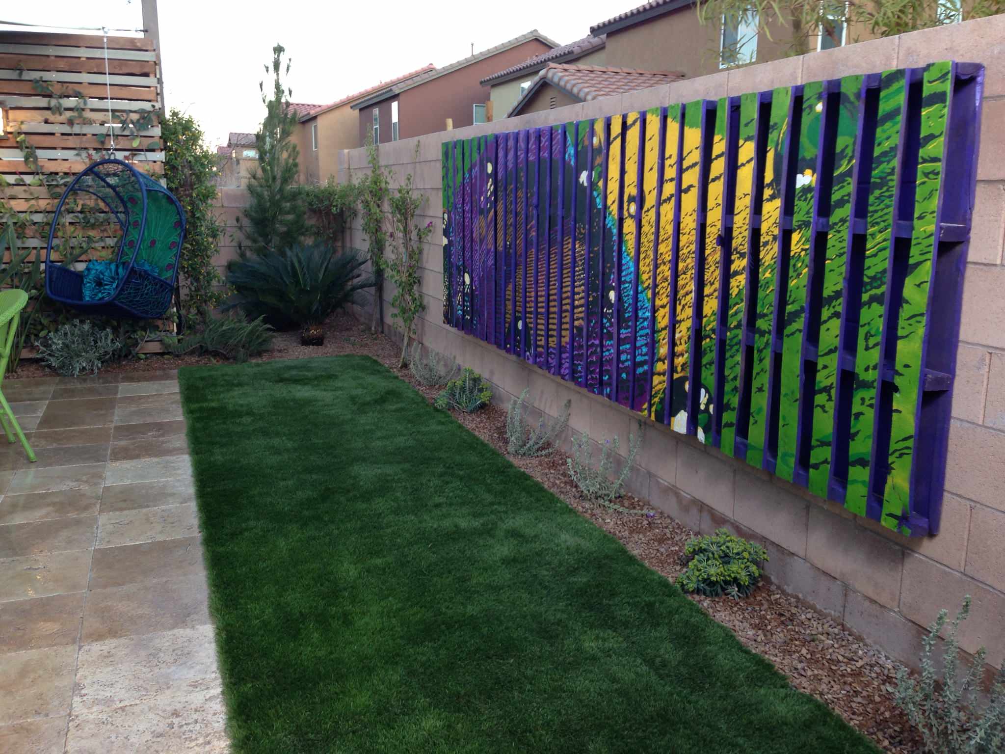 Eine Betonmauer ist oft kein schöner Anblick. Wie solch ein Sichtschutz etwas farbenfroher wird, zeigt Landschaftsgärtner Damon Lang: Er hat einfach zwei Paletten an die bereits bestehende Mauer montiert und mit Farben ein echtes Freiluftkunstwerk geschaffen.