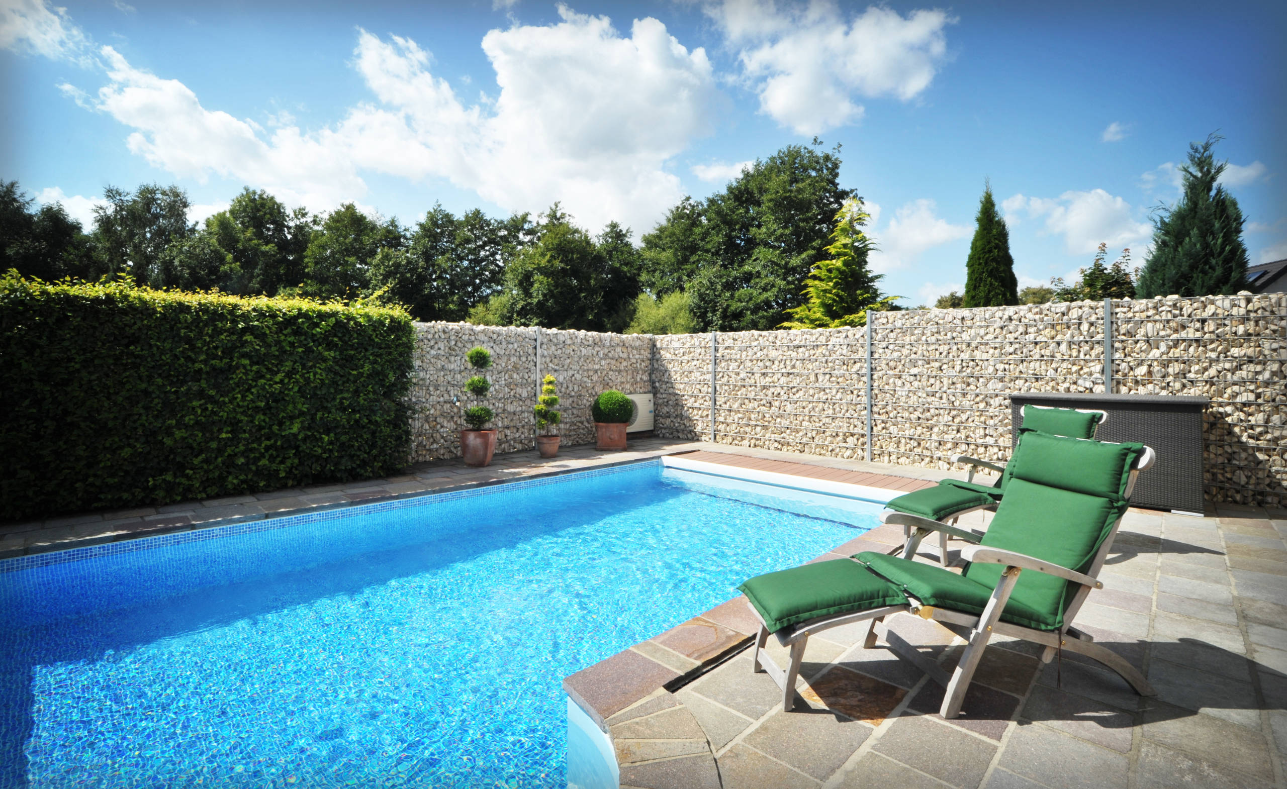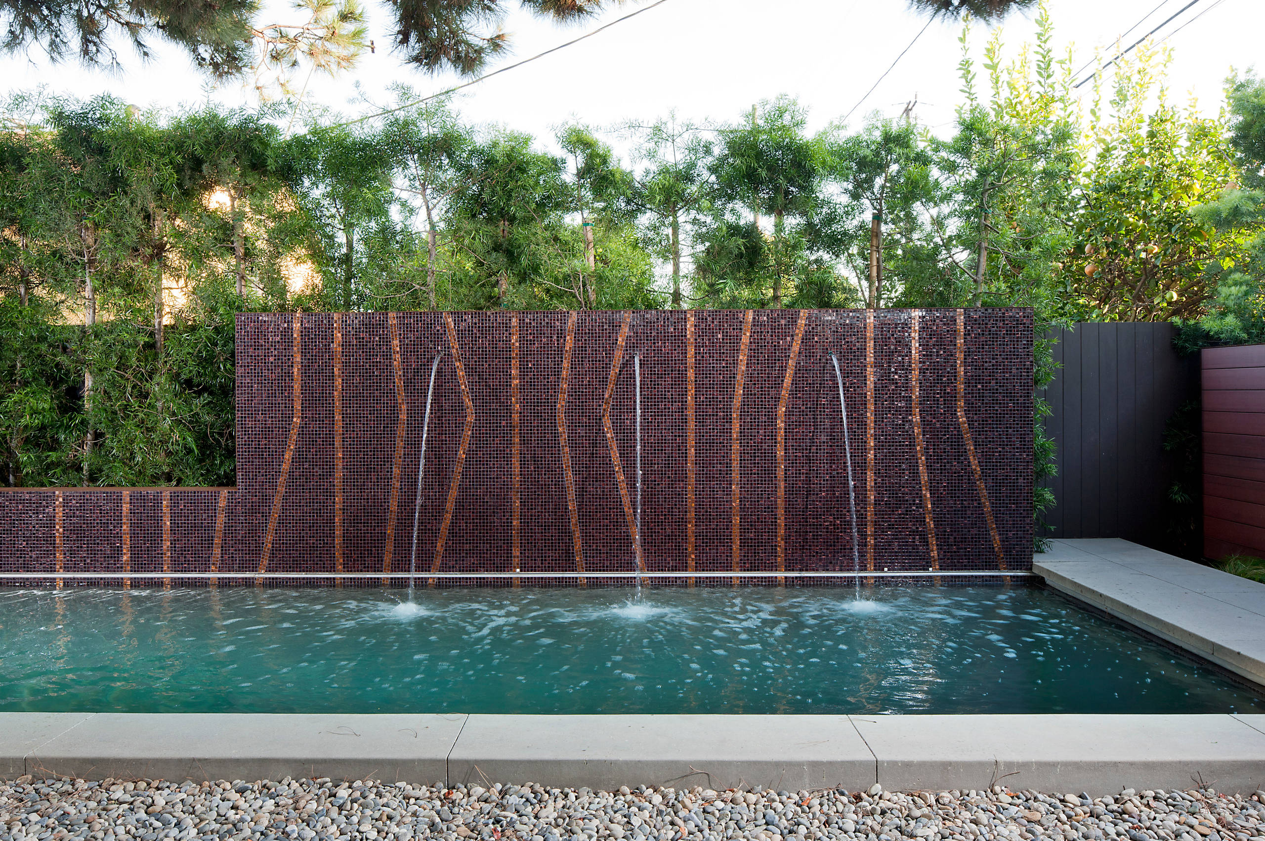 Eine sprudelnde Wasserquelle in den Sichtschutz zu integrieren, ist ein beliebtes Gestaltungselement. Die beruhigende Wirkung von plätscherndem Wasser wirkt obendrein wie eine Wellnesskur. Ob dünner Strahl oder breiter Schwall – das bleibt ganz Ihnen überlassen.